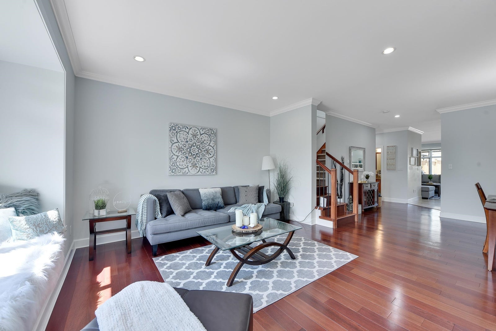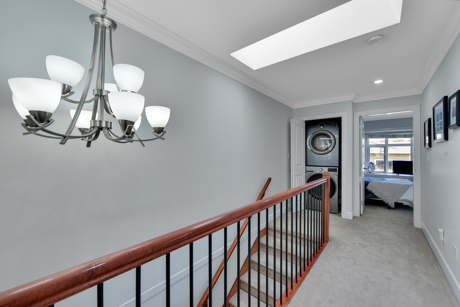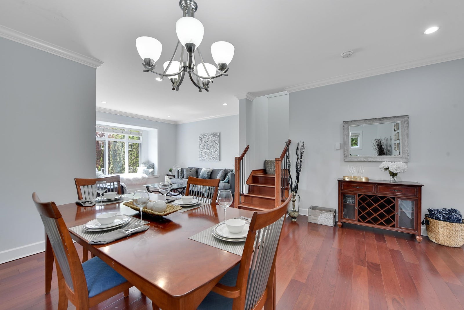 Nestled in the heart of Central Lonsdale, this charming 1/2 duplex exudes with its living spaces. One of the bedrooms offers beautiful views of Grouse Mountain. The spacious primary suite invites relaxation, while a third bedroom features a ceiling that sparkles with stars and constellations at night. Ideal for families, this lovely home is just a stroll away from parks, the scenic Grand Boulevard walking and biking paths, and convenient amenities like Whole Foods, Shoppers Drug Mart, and the hospital. The recently renovated basement suite (under 2 years) offers a cozy 1 bedroom, a den, a private entrance, laundry, and ample storage, enhancing this inviting residence.